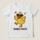 En lustig tecknad av en gult anka som bär solglasögon och som dansar med glädje. Perfekt för t-shirts, mugg och gåvor som sprider lycklig och humor.
