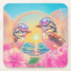 Coola Fåglar med solglasögon vid solnedgång Underlägg Papper Kvadrat