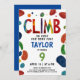 Få redo för en spännande födelsedagsfest, inomhus eller utomhus, med vår livliga inbjudan! Med färgstark geometrisk klättring i sten i abstrakt på vit bakgrund ställer denna design in scenen för ett energiskt firande. Fetstig grönt, rött och svart typsnitt gör det till perfekt för ett barns eller tonåringars födelsedagsäck. Anpassa texten och välj mellan utskriftsformat och digitala format som kan hämtas omedelbart. Den omvända sidan är djupt blå och lägger till en popo från färg och stil. Firar din barn födelsedag med den här livliga inbjudan!