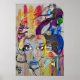 Abstrakt graffiti av kvinna med hår och många graffiti-märkre, mästerverk på gatekonst, graffiti är inget brott!!!