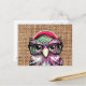 En coola rosa lila, färgstark tatuering, rolig uggla med glasögon. En unik utformning på brunt jute struktur-bakgrund. Perfekt humor-presenttanken för vem som helst på tillfälle.
