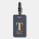 Eleganten är fullt utrustad med anpassade bagagemärke med djup blå bakgrund, brunt fet monogram.