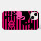 Vibrant rosa och svart rand med coola flamingo silhuette-design på monogrammat fodral.