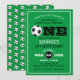 Hissar den stora! En födelsedagsinbjudan till din lilla mästare som vänder på en, med ett fotbollstema/fotbollstema, med gröntens bakgrund, vit och svart text, en fotboll och en modern party-mall som är enkel att anpassa.