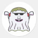 Coola Ghost bär nyanser och hörlurar och vinkar skrämmande arm med ett leende.