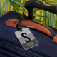 Coolan har full utformning av anpassadets bagagemärke med grått rand och fet svart monogram. Modern elegant-design.