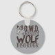 En rolig och söt varg med OWD, överdriven Varg Disorder och bild av en vacker grått-varg. I kärlek fantastisk-vildens nyckelkedjor för djur, särskilt vargar.