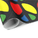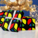 Groovy-fredstecken, röd blå grönt gult på svart bakgrund. Anpassa med egen text, ändra storlek på bilden. Vintage söt, gigantisk, konstnärlig trippy hippie 60 mönster.