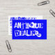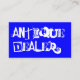 Affärskort av jordisk varm typografi, antika dealer i blå och vit konsistens. Text- och bakgrundsprogram färg kan ändras till kostym.