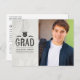 Det här unika meddelandet om studenten har en coola, helinspirerad design och ett stort foto. På framsidan av vykortet är ord "Grad" skriven med gungande tryckt bokstäver. Anpassa med student namn, skolan, studenten-året och fotot. På baksidan kan du skriva ett personligt meddelande till mottagarna och lägga till information om grad party.