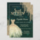 Elegant guld klänning och guld glitter droppar i grönten.