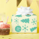 "Coola Helgdag Julgran Ornaments Wrapping Papper" kombinerar en lekfull blandning av turkos Julgranar, prydnadsämnen och snöflingor, perfekt för att omsluta gåvor som känner sig levande och Snöflingor.