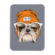 Den här designen har en bulldog porträtt i en hatt och med glasögon.