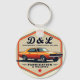 Ett av ett slag nyckel-fob, med en klassisk Camaro och en historisk hastighetsbutik.