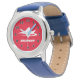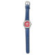 Coola jet fighter barn vaktar med anpassningsbar pojkar namn. Personlig vaktar pojkar. Cute Helgdag eller Birthday presentidé för son, barnson, systerson, kusin, barn osv. Blå och röd uppringning med flygplan och smart typografi. Diameter ca 33 mm. Blått eller färgad läderband. Vatten resistent upp till 3 pub. Lämplig för åldern 4-12 år. Presentidéer för flygtemat.