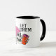Kaffe mugg säger "låt dem bli" med en rosa och kaffe.