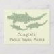 Roliga utklippta bilder av kamouflagegröna siluetter av en alligator sedd uppifrån när den kryper och simmar genom det imaginära träsket. Bakgrunden på denna bild är genomskinlig. Du kan ändra bakgrunden, lägga till eller minska antalet bilder, ändra position och storlek på bilderna och ändra texten. Roligt gratulationskort till en stolt bayou-mamma.