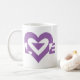En grafisk logotyp, anpassningsbar. KÄRLEK i lila.
