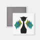 Kylmagneten i Coolan Cat Mid Century Modern Retro har en svart katt på 1950-talet - 1960-talet, stil med grönt ögon och rombgrafik i grönt och blått. Se matchande artiklar i vår butik.