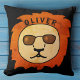 Coolans Lejona Orange, Black Kid:s Namn Pillow. En coola lejon med solglasögon på svart bakgrund. Lägg till ditt namn eller radera det.