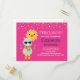 Födelsedagsfest inbjudan-vykort med en coola tittar lama med en mörk solglasögon. Förtryckt i en färglös, strimlad scarf och små roligtar. En ljus gult sol med lycklig kawaii ansikte i bakgrunden. Viktiga färglösa trianglar omger denna roligt som älskar lama. Rosa bakgrund.