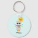 En nyckelkedja för personlig med en coola tittar lampa med en hel del mörk solglasögon. Förtryckt i en färglös, strimlad scarf och små roligtar. En ljus gult sol med lycklig kawaii ansikte i bakgrunden. Viktiga färglösa trianglar omger denna roligt som älskar lama. Blå bakgrund.