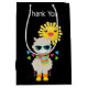 Tack för att du har en coola som tittar Lama med mörk solglasögon. Förtryckt i en färglös, strimlad scarf och små roligtar. En ljus gult sol med lycklig kawaii ansikte i bakgrunden. Viktiga färglösa trianglar omger denna roligt som älskar lama. Svart bakgrund.