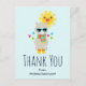 Tack för vykortet med en coola tittar lampa med mörk solglasögon. Förtryckt i en färglös, strimlad scarf och små roligtar. En ljus gult sol med lycklig kawaii ansikte i bakgrunden. Viktiga färglösa trianglar omger denna roligt som älskar lama. Blå bakgrund.