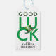 Denna moderna, minimalistiska grönt och vita favoritbricka för en julklapp på St. Patrick's Day kan användas både för ditt företag och för dina familjegåvor. Det har ett stort svart skript som säger Lycka till, en vattenfärgsfärgad grönt irländsk hatt och en anpassade text, allt på vit bakgrund. Baksidan är med en enkel ljus grönt.