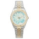 En snyggt och sofistikerad klocka med en elegant faux marble mönster med snurrande färg i turkosblått och grädde färg. Klockan ansikte har konst deco stil nummer.