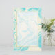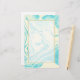 Snyggt och sofistikerat papper pappert med en elegant faux marble mönster med snurrande färg i turkosblått och grädde färg. Ett halvgenomskinligt ram med ett guld gräns överst.