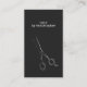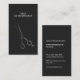 Modern visitkortsmall med mörk grått-bakgrund och ritad vit sax mönster. Perfekt för hårstylist.