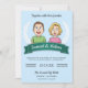 Förbluffa dina gäster med den här coolans bröllopsinbjudan med ett par i lycklig med modern typografi mot ljusblå bakgrund. Lägg bara till din händelseinformation i den här mallen som är enkel att använda för att göra den till en inbjudan av typen en. Vänd kortet över för att visa en elegant rand mönster på baksidan av kortet.