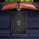 Den här moderna elegantens monogram bagagemärke innehåller initialer på mörk svart tryckt läder i en klassisk coola-typografi. På baksidan finns utrymme för adress.