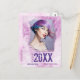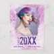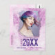 Coola, modern grunge stil, vykort för fotoannonsering i studenten i skuggor av rosa och lila. Anpassad design är ett unikt foto, namn, studenten och högskola, högskola eller universiteten namn som är målat på en plågad vägg i stil.