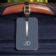 Elegant anpassade mörk blått bagagetagg med FAUX metall rand och ditt feta monogram.