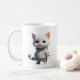 Ett kaffe mugg med denna charmerande kattunge-design är perfekt för alla djurälskare. Den här designen har en söt tecknad kattunge med en coola med jacka och byxor, skapar den som en snyggt och lekfull bildkonst.