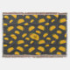 Anpassa elegantens täckfilt med ditt initiala och namn. Coola och roligt taco mönster på mörk grått-bakgrund. Din vektorillustration gjord med tortilla i toastisk form med kött, sallad, tomatos och kål.