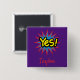 Med en designad knapp för populär coola och trendig visas "Ja" i gult i svart kontur med en röd och blå stjärna på lilans bakgrund. Ditt namn skrivs i roligtens röda teckensnitt. Clipart: AnneIllustration https://www.etsy.com/shop/AnneIllustration