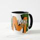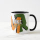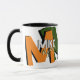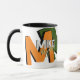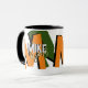 Snyggt mugg personlig med namn i coola font stil och med stor orange och grönt överdimensionerad första brev med svart skugga... modern typografi...