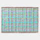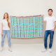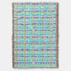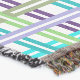 Kastfilten har en Art Deco-design av en plätering som består av två nyanser av turkos, två nyanser av lila och två nyanser av grönt.