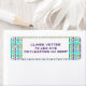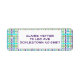 Dessa returetiketter har en Art Deco-utformning av en plaid bestående av två turkoshajer, två nyanser av lila och två nyanser av grönt.