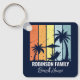 Personlig Blåstrandkrets för din familjs hem i Hawaii, Florida eller andra tropiska ödestinationer. Coola handflatan träd går mot färg av orange och gult över din anpassade semester namn i vitt skript. Underbar för en grupp som går på en kryssning eller en kustflyktsträcka.