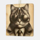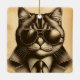 Denna reflektor-stil-konst visar en svart linje teckning på sepia av en katt som bär sjöslass från en flygande katt och i en affärsman, detektiv, polis eller spion kostym. Gör en underbar födelsedag, jul eller annan helgdag till kattunge älskare!