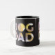 Inget subtilt med den moderna och höftsvarta Hund Mugg. Slagit ut brev visar bakgrunden till halvgenomskinliga former. Designad av Quirkytown Kreativ. Bild © Doug Davis. www.zazzle.com/store/QuirkyTownCreative