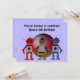 Få barnen upphetsade med den här söta designen med tre robotar i rött, grått och blått. En stor röd och gult skuggad sfär bakom sig på en ljusblå bakgrund. Anpassa efter behov.