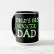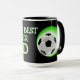 Unik, rolig, färgrik, modern och dekorativ mugg för kaffe, te, mjölk eller juice. Med bild av fotboll på en svart och grön bakgrund. Och "Världens bästa fotbollspappa"-citat. Söt och rolig födelsedagspresent till pappa, fadersdag eller julklapp. En cool och originell mugg till världens bästa pappa.