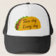 Anpassa presenten till honom med text Taco-dag varje dag. Din vektorillustration gjord med tortilla i toastisk form med kött, sallad, tomatos och kål.