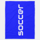 Den här sportetiska, moderna designen har modern, vit SOCCER-text mot levande royalets blå bakgrund. Texten och färg i den här utformningen kan vara personlig.