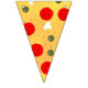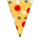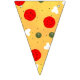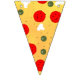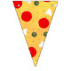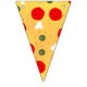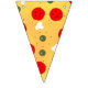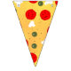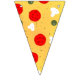 Pizza party Party levererar inomhus eller utomhus Decor Banners Bunting Flaggor för att fira barns födelsedag. Juicy vector tillverkad pizza med crust, ost, salami, champignon-svampar, oliver och en sprinkl av oregano.